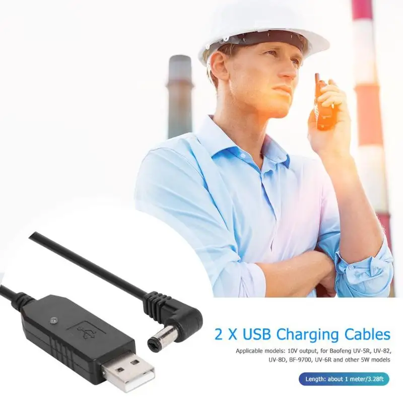 2 шт., 1 м USB-кабели для зарядки от 5 В до 10 В для BaoFeng UV-5R UV-82 UV-8D BF-9700, радио, настольное зарядное устройство для аккумуляторов