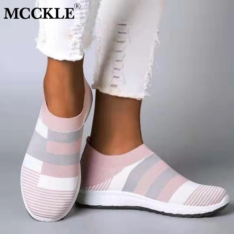 Кроссовки-носки MCCKLE женские, Вулканизированная подошва, вязаные, без шнуровки, повседневные лоферы, лето 2021