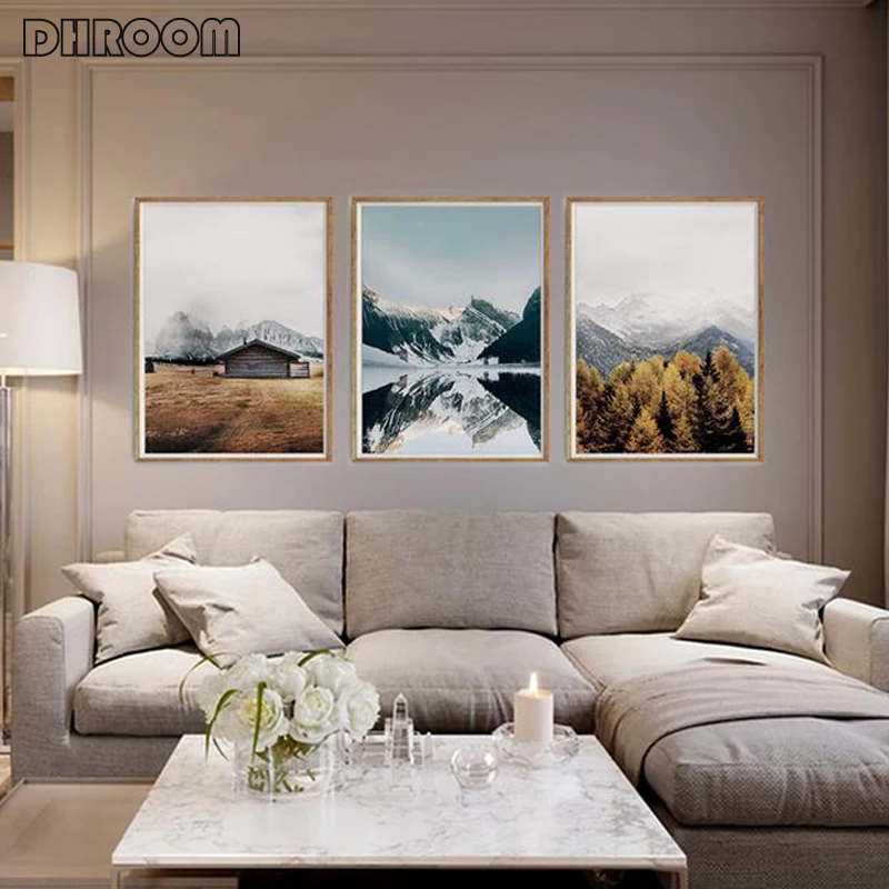 Скандинавский холст, постер, снежный Горный пейзаж, настенное искусство, картина с природой, украшение для дома, настенные картины для йоги