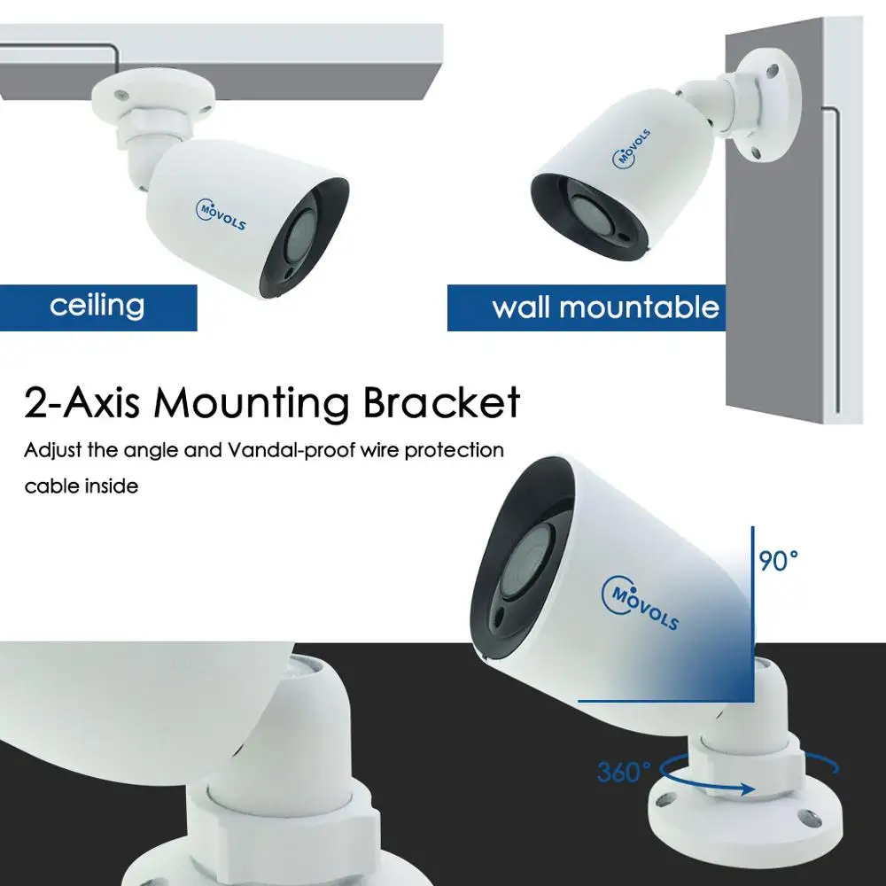 MOVOLS камера наблюдения имеет прочный алюминиевый корпус и корпус, с IP66 водонепроницаемый рейтинг. Так что вы можете свободно установить его на открытом воздухе, как в вашем гараже, на заднем дворе или где-либо еще. Он может выдерживать суровые погодные условия, включая дождь, снег, сильный мороз и тепло.
