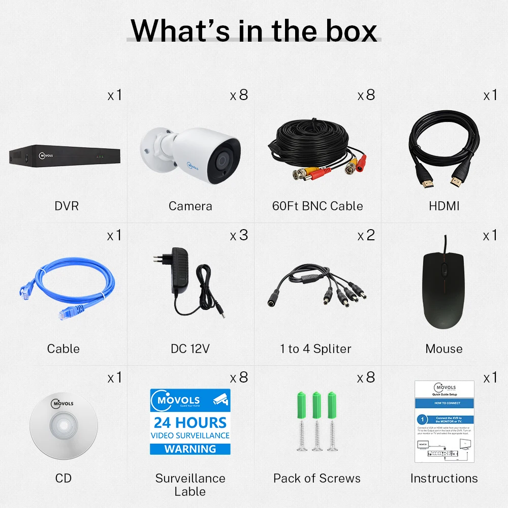 MOVOLS 4K Ultra HD система видеонаблюдения 8CH H.265 DVR 8MP 8 шт. система безопасности ИК ночного видения водонепроницаемый CCTV комплект