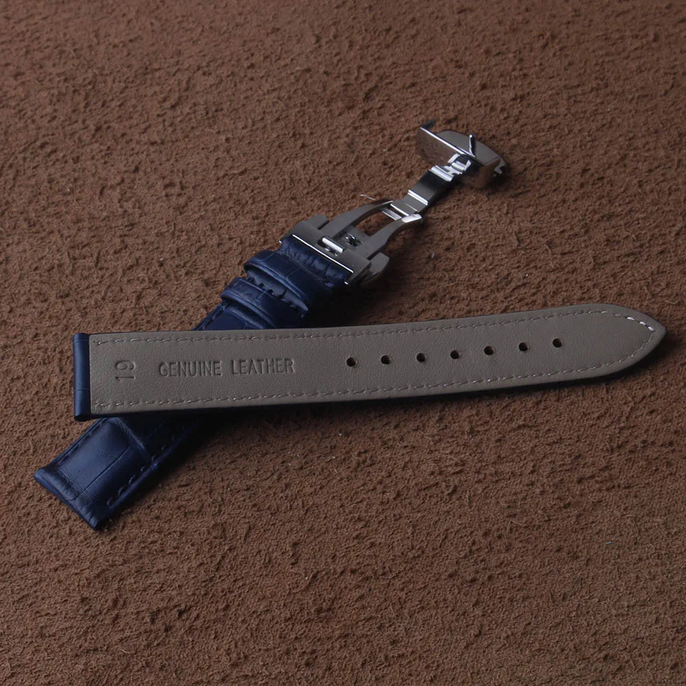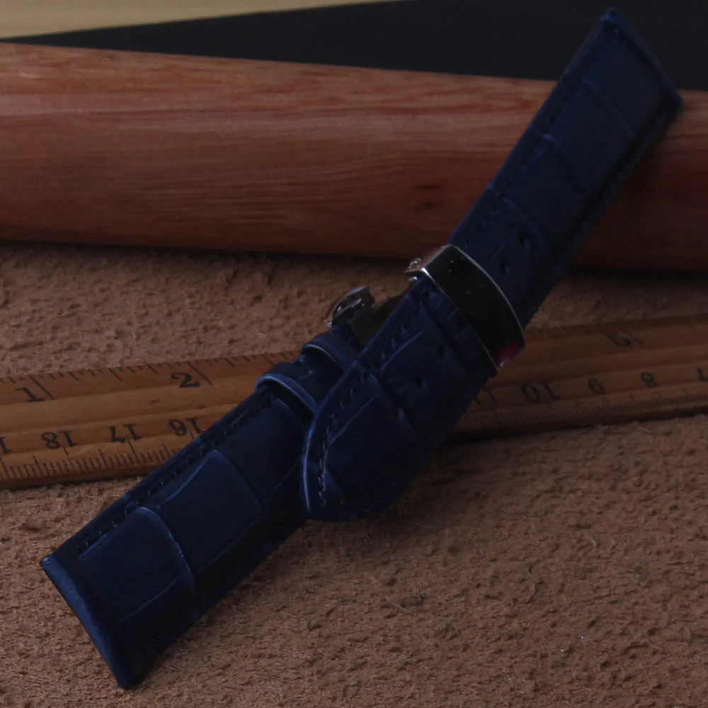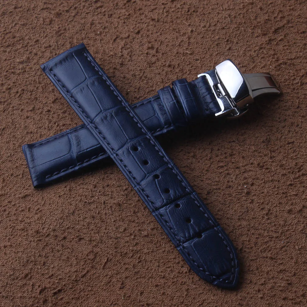 15 мм 16 мм 17 мм 18 мм 19 мм 20 мм 21 мм 22 мм 23 мм новые мужские высококачественные часы из натуральной кожи с синим Кроко зернистым ремешком с застежкой