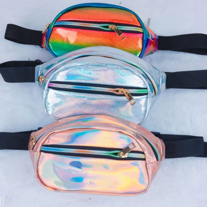 Радужные градиентные уличные сумки для женщин, забавные мешки с лазерным рисунком, уличные спортивные сумки унисекс в форме коробки