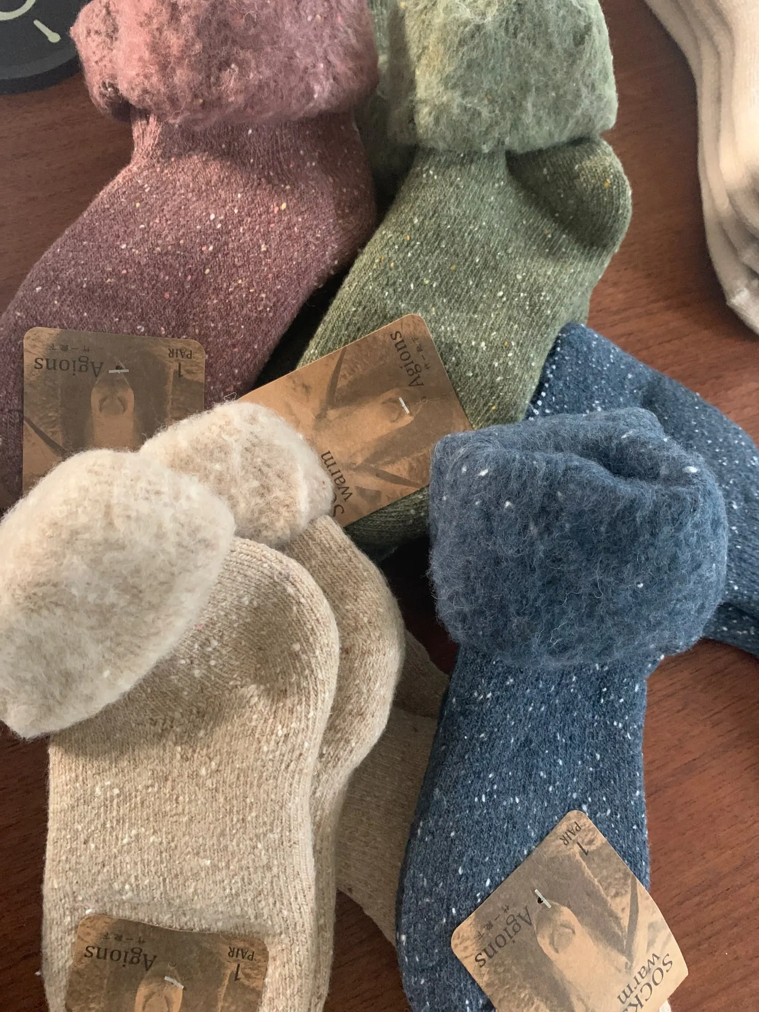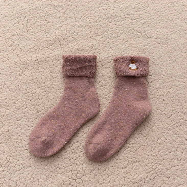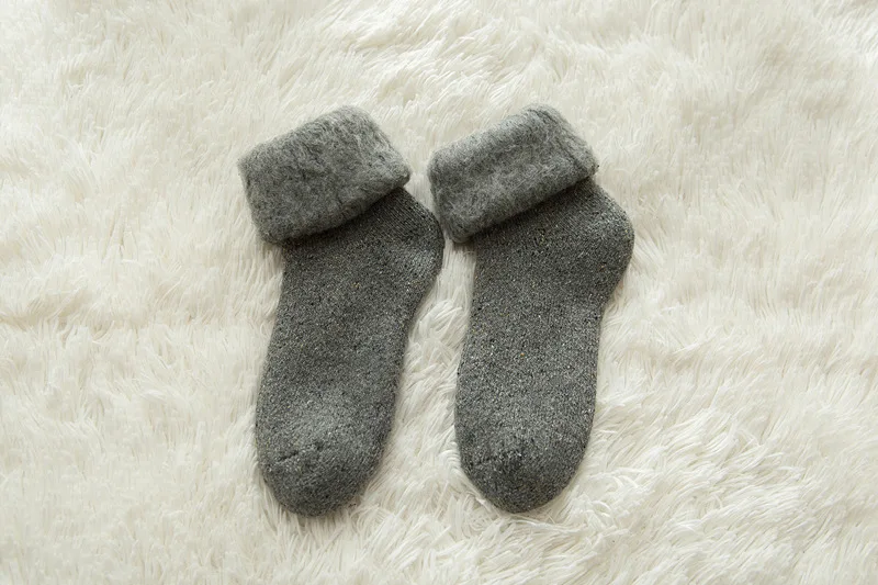 Носки женские шерстяные, зимние, утепленные, в японском стиле, однотонное полотенце, 102402