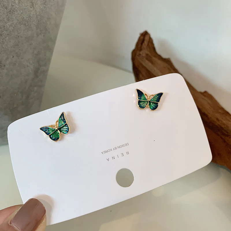 TAFREE масляная живопись Зеленая бабочка сплав маленькие серьги-гво...