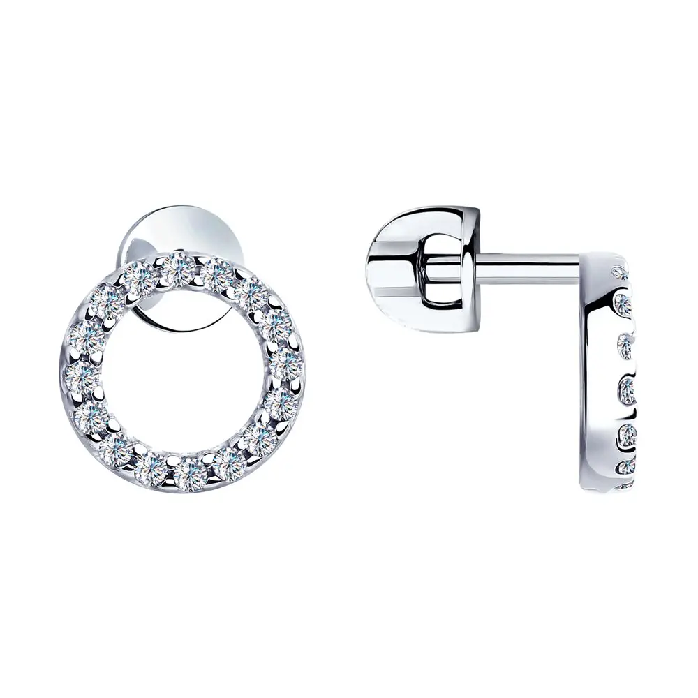 Серьги SOKOLOV из серебра с фианитамиУниверсальные серьги-пусеты из серебра с фианитами понравятся тем, кто любит комбинировать разные украшения в одном аутфите. Они придадут оригинальности повседневным образам, добавят романтичности наряду для свидания, завершат стильный лук для вечеринки.
