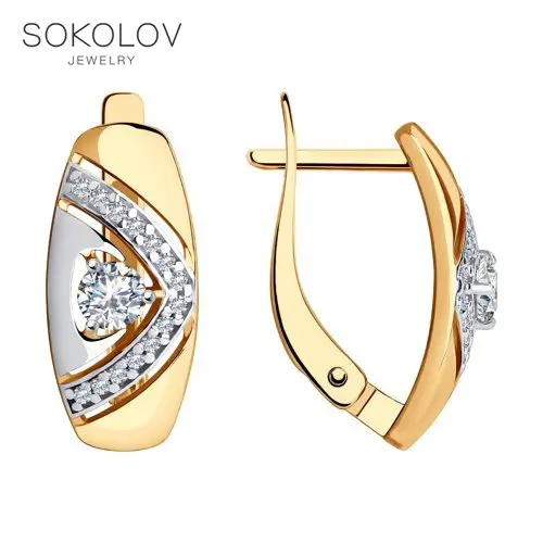Серьги SOKOLOV из золочёного серебра с фианитами, Серебро, 925, Женские, Серьги 2022 тренд, Оригинальная продукция