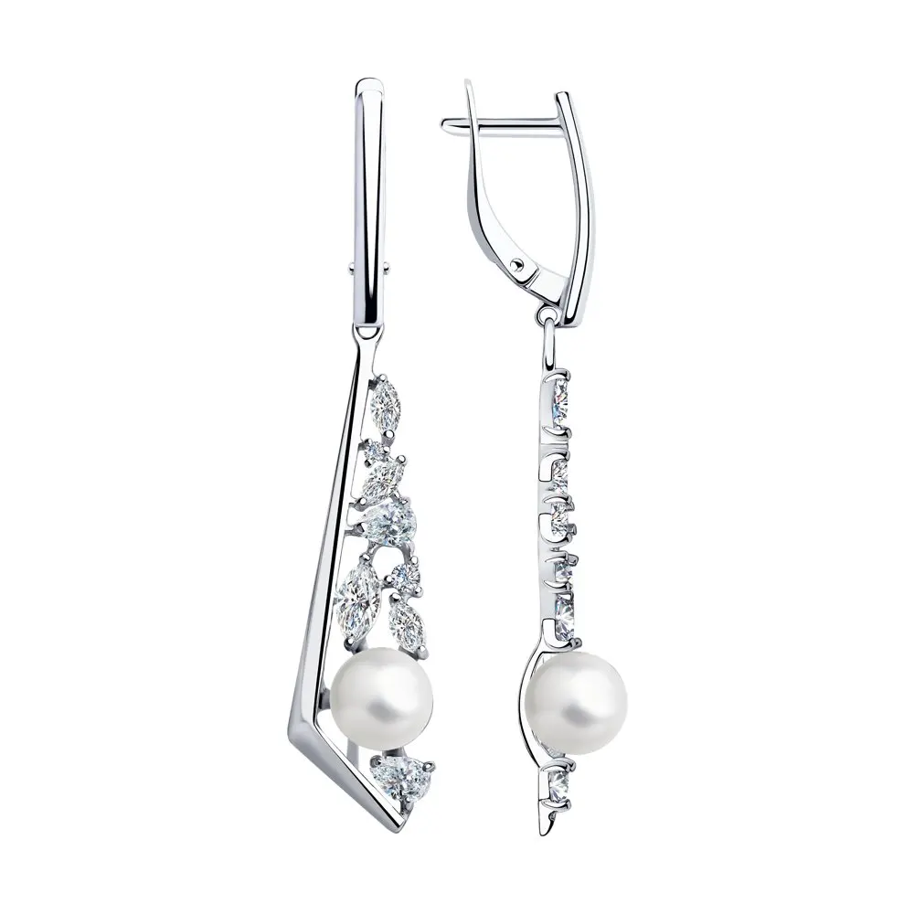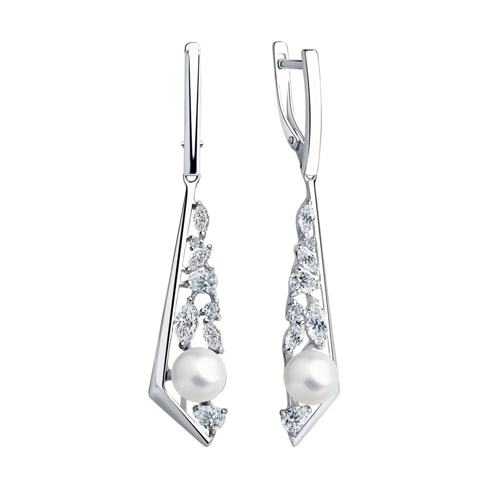 Серьги SOKOLOV из серебра с жемчугом и фианитами