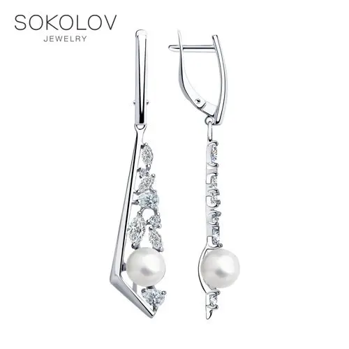 Серьги SOKOLOV из серебра с жемчугом и фианитами, Серебро, 925, Женские, Серьги 2022 тренд, Оригинальная продукция