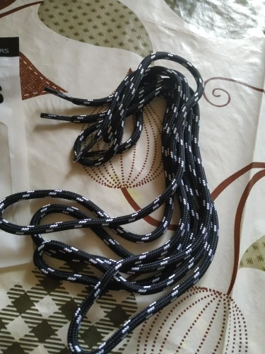 Шнурки хорошего качества. Только вот с размером я несколько промахнулся. Заказал длину 160 см. Шнурки, которые я получил, были чуть длиннее - 165 см в "спокойном" состоянии. НО! Если их растянуть, а при шнуровке именно это и происходит, то длина в таком состоянии более 190 см! Придется укоротить.