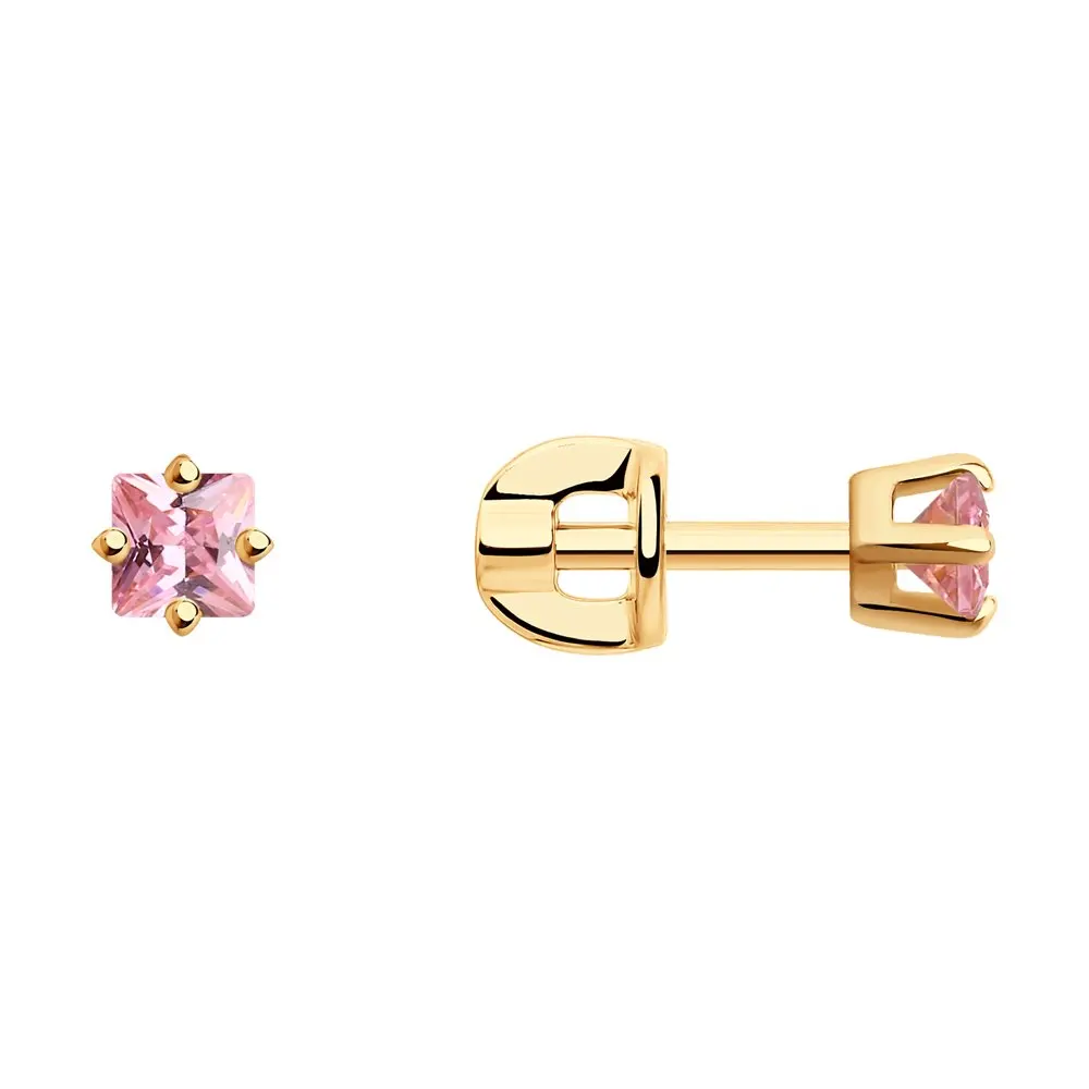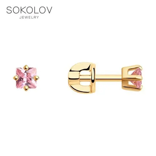 Серьги-пусеты SOKOLOV из золочёного серебра с розовыми фианитами, Серебро, 925, Женские, Детские, Серьги 2022 тренд