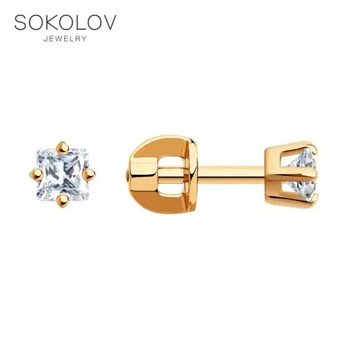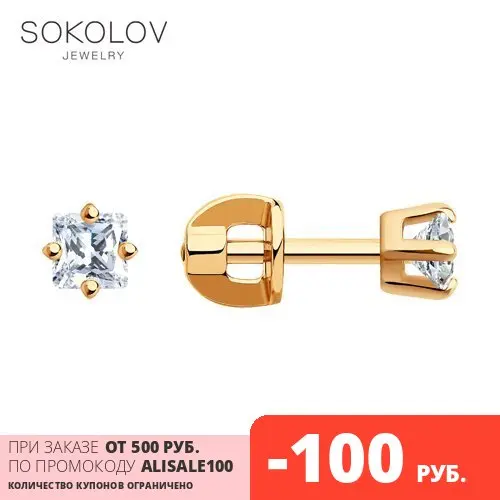 Серьги-пусеты SOKOLOV из золочёного серебра с фианитами, Серебро, 9...