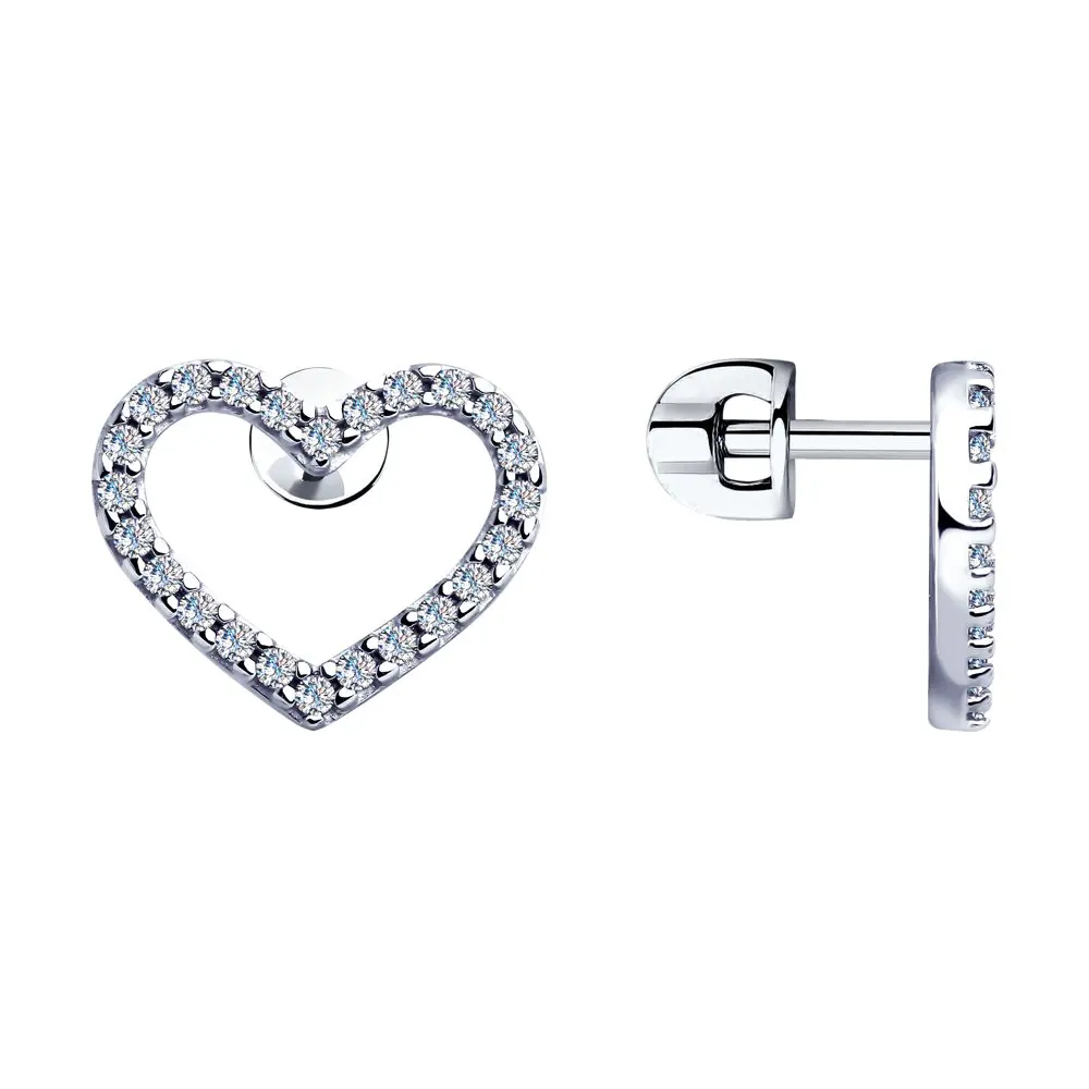 Серьги SOKOLOV из серебра с фианитамиУниверсальные серьги-пусеты из серебра с фианитами понравятся тем, кто любит комбинировать разные украшения в одном аутфите. Они придадут оригинальности повседневным образам, добавят романтичности наряду для свидания, завершат стильный лук для вечеринки.
