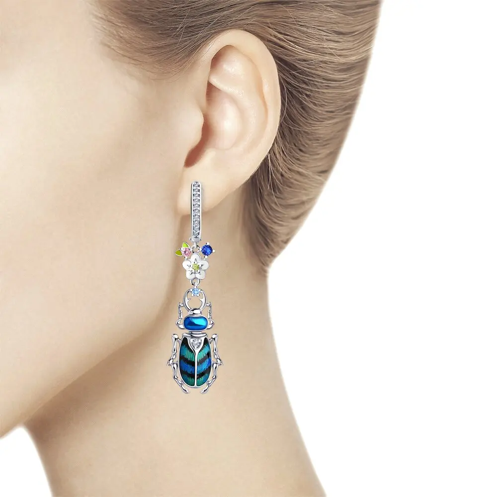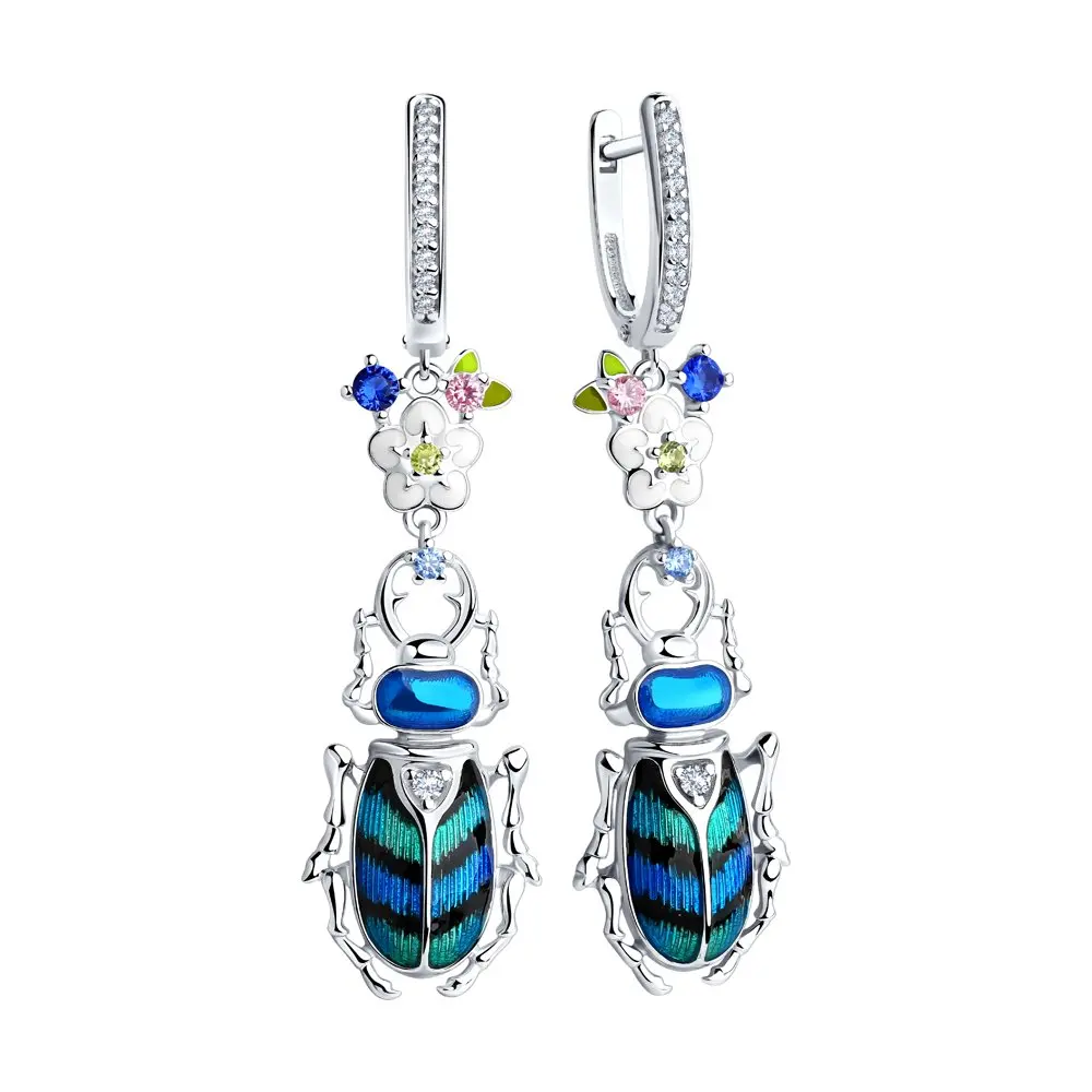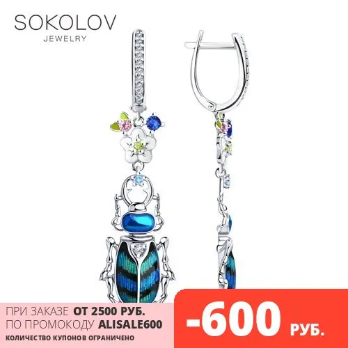 Серьги SOKOLOV из серебра с эмалью и фианитами, Серебро, 925, Женские, Серьги 2022 тренд, Оригинальная продукция