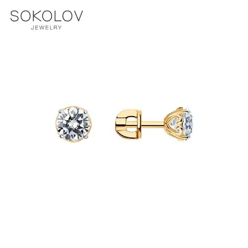 Серьги SOKOLOV из золота с фианитами, Золото, 585, Детские, Серьги ...