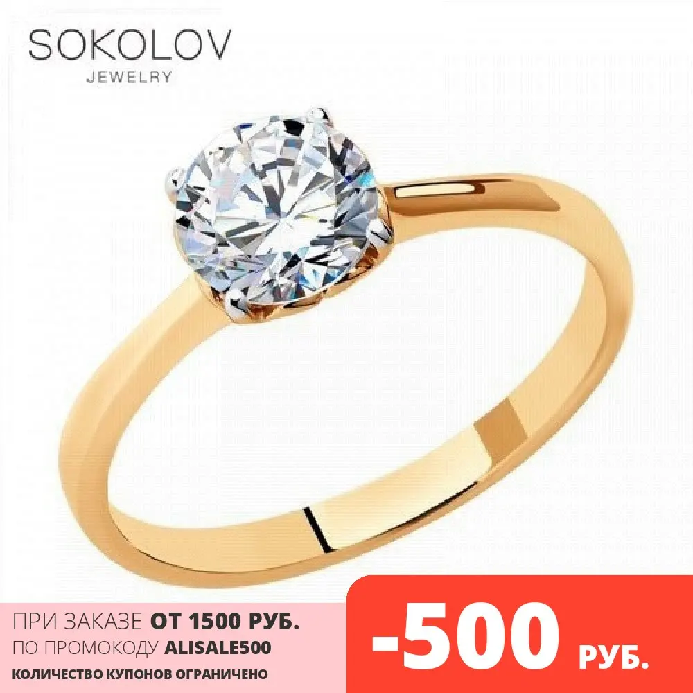 Кольцо SOKOLOV из золочёного серебра с фианитом, Серебро, 925, Женское, Оригинальная продукция