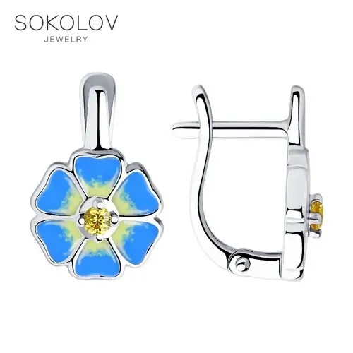 Серьги SOKOLOV из серебра с эмалью и фианитами, Серебро, 925, Детские, Серьги 2022 тренд, Оригинальная продукция