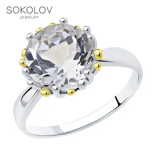 Кольцо SOKOLOV из золочёного серебра с горным хрусталем, Серебро, 925, Женское, Оригинальная продукция