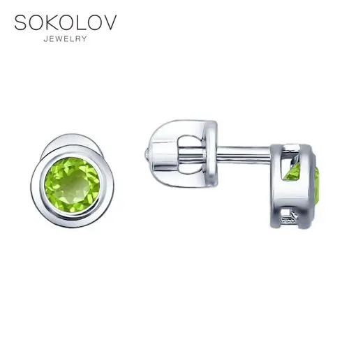 Серьги-пусеты SOKOLOV из серебра с хризолитами, Серебро, 925, Женские, Серьги 2022 тренд, Оригинальная продукция