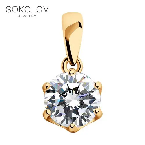 Подвеска SOKOLOV из золочёного серебра с фианитом, Серебро, 925, Оригинальная продукция