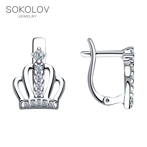 Серьги SOKOLOV из серебра с фианитами, Серебро, 925, Женские, Серьг...