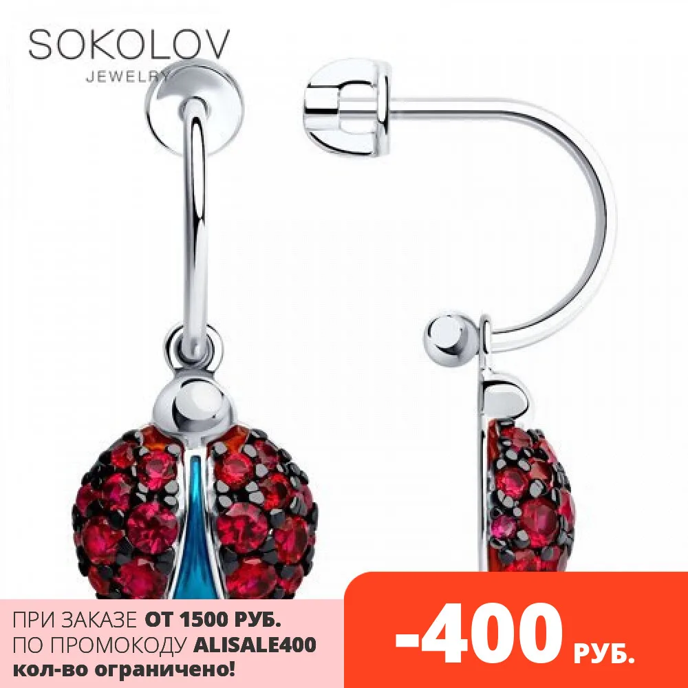 Серьги SOKOLOV из серебра с эмалью и фианитами, Серебро, 925, Женские, Серьги 2022 тренд, Оригинальная продукция