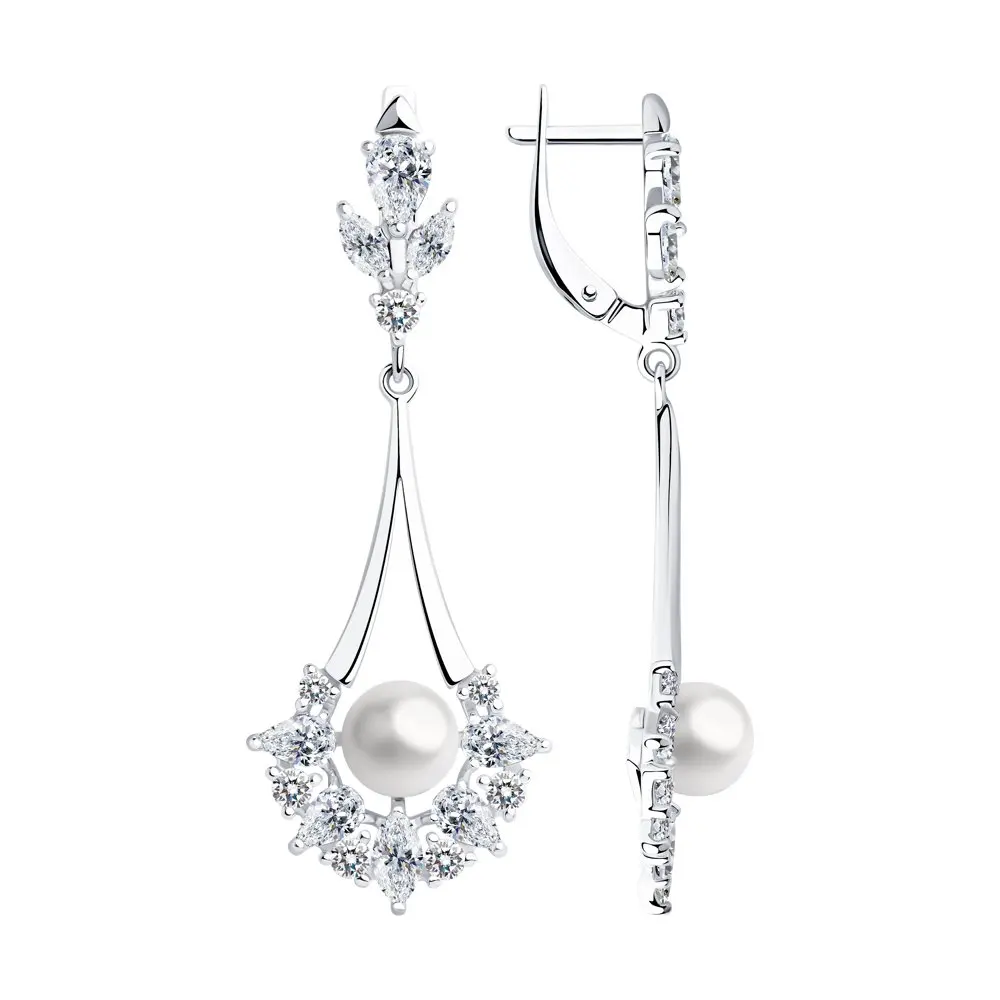 Серьги SOKOLOV из серебра с жемчугом и фианитами, Серебро, 925, Женские, Серьги 2022 тренд, Оригинальная продукция