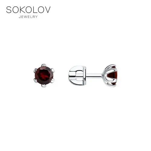 Серьги-пусеты SOKOLOV из серебра с гранатами, Серебро, 925, Женские, Серьги 2022 тренд, Оригинальная продукция