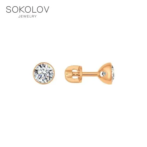 Серьги SOKOLOV из золота с фианитами, Золото, 585, Детские, Серьги ...