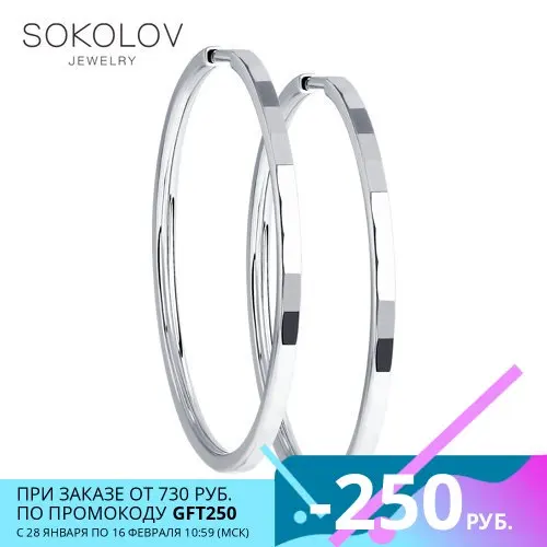 Серьги конго SOKOLOV из серебра с алмазной гранью, Серебро, 925, Женские, Серьги 2022 тренд, Оригинальная продукция