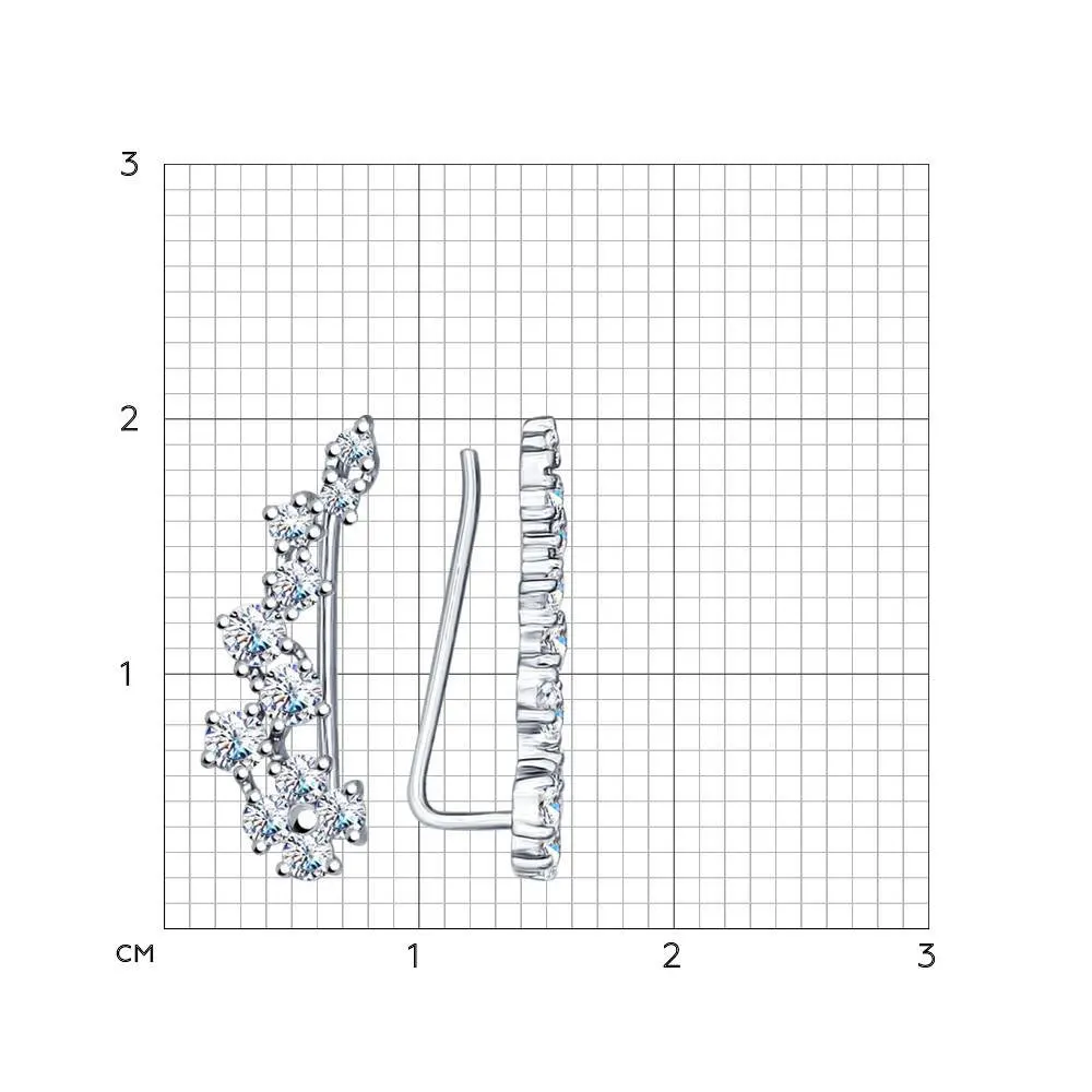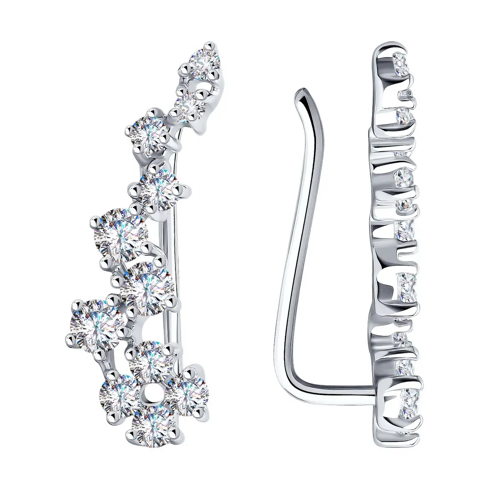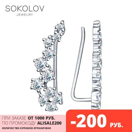 Серьги SOKOLOV из серебра с фианитамиСеребряные серьги-зажимы, или каффы, – маркер современного стиля и один из ведущих сезонных трендов. Дизайнеры решили поэкспериментировать и сочетать неординарную форму с нежным, почти «воздушным» дизайном. Итогом их фантазии стало это изящное украшение, которое легко вписывается как в ультрамодные дерзкие образы, так и в расслабленно-романтичные.