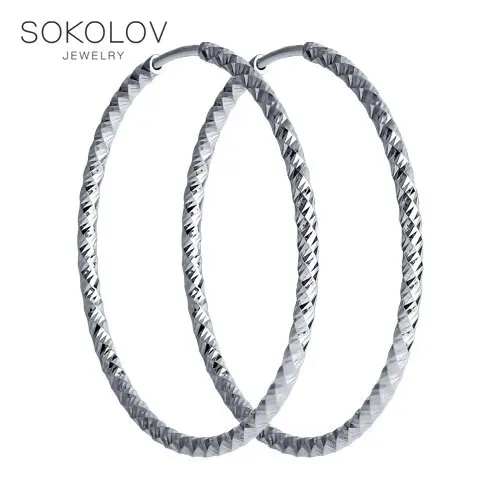 Серьги конго SOKOLOV из серебра с алмазной гранью, Серебро, 925, Женские, Серьги 2022 тренд, Оригинальная продукция