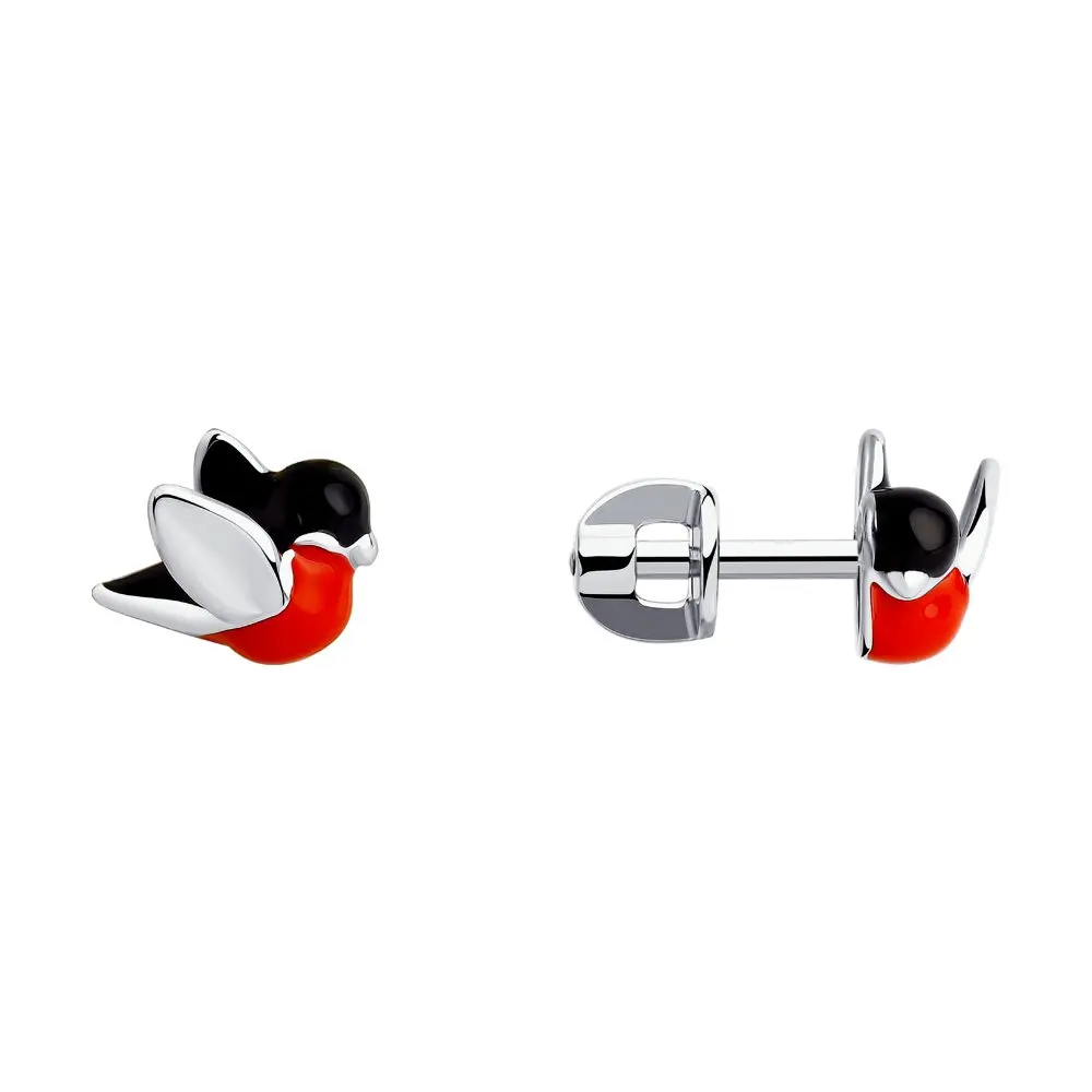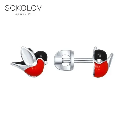 Серьги-пусеты Снегири SOKOLOV, Серебро, 925, Женские, Серьги 2022 тренд, Оригинальная продукция