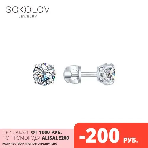 Серьги SOKOLOV из серебра с фианитами, Серебро, 925, Женские, Серьг...