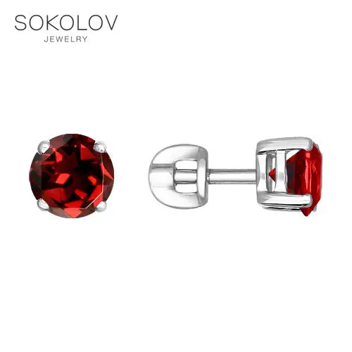 Серьги-пусеты SOKOLOV из серебра с гранатами, Серебро, 925, Женские, Серьги 2022 тренд, Оригинальная продукция