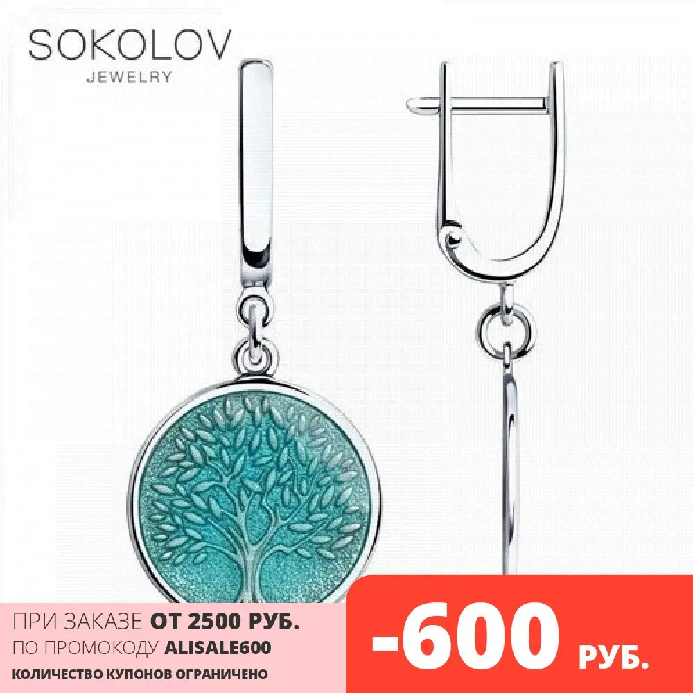 Серьги SOKOLOV из серебра с эмалью, Серебро, 925, Женские, Серьги 2022 тренд, Оригинальная продукция