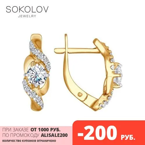 Серьги SOKOLOV из золота с фианитами, Золото, 585, Женские, Серьги ...