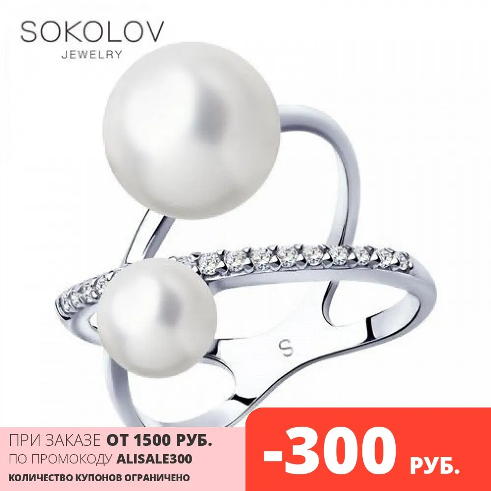 Кольцо SOKOLOV из серебра с жемчугом и фианитами, Серебро, 925, Женское, Оригинальная продукция