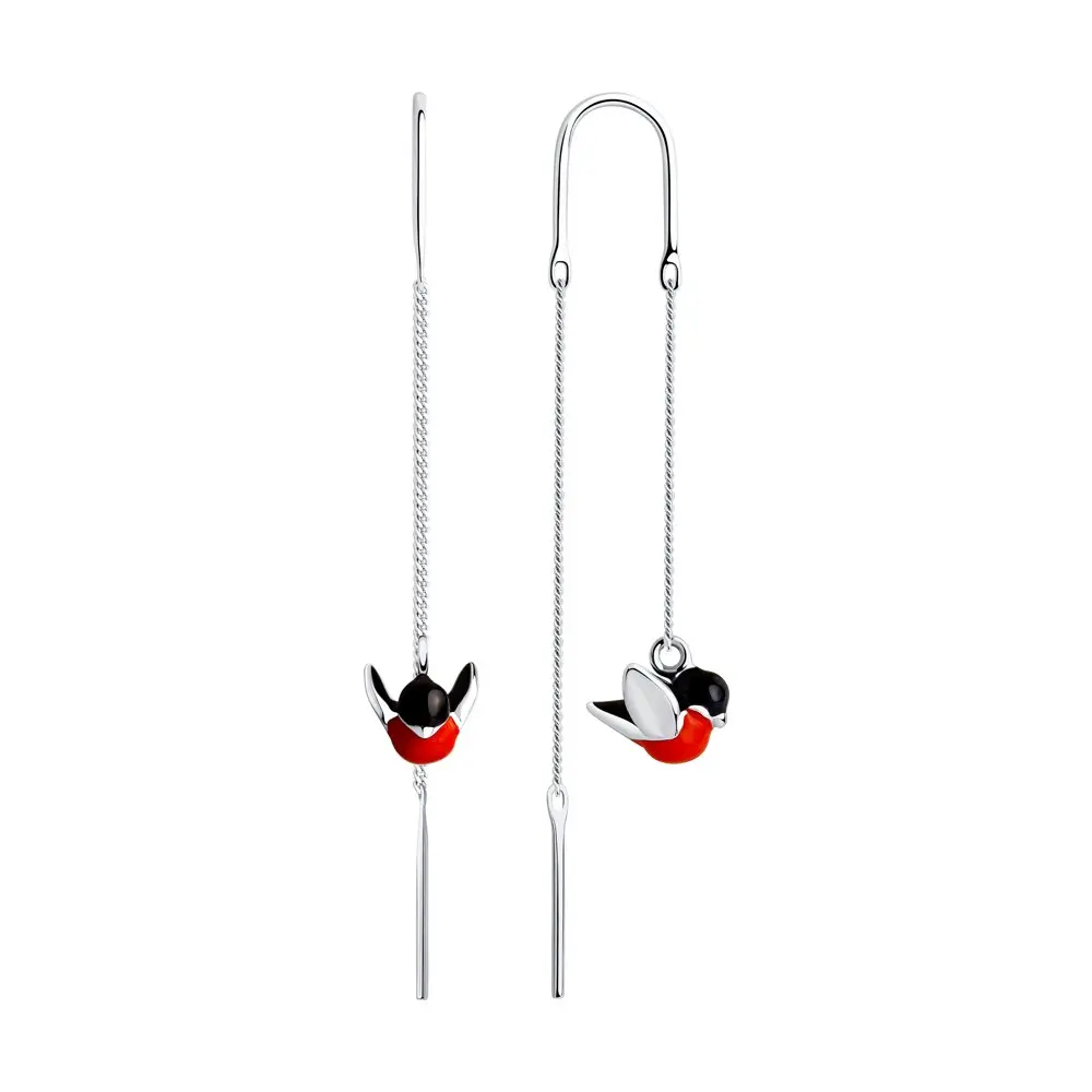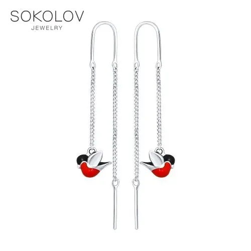Серьги-продёвки со снегирями SOKOLOV, Серебро, 925, Женские, Серьги 2022 тренд, Оригинальная продукция
