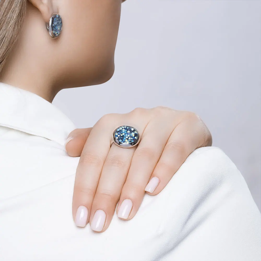 Кольцо SOKOLOV из серебраУникальная искрящаяся вставка, созданная из кристаллов, выглядит очень необычно и стильно. Каждый камень погружён в специальный полимер строго по определённой технологии. Таким образом получается единое ювелирное полотно из нескольких кристаллов на одной подложке, которое потом закрепляется в украшение.