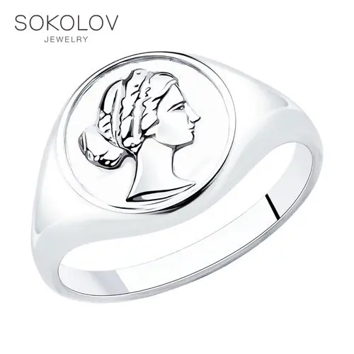 Кольцо SOKOLOV из серебраКольцо из серебра с изображением античного профиля понравится любителям крупных украшений. Винтажные мотивы подчёркивает массивная форма и благородный блеск металла. Изящный дизайн и доступная цена – повод поэкспериментировать со стилем и купить яркое трендовое украшение.