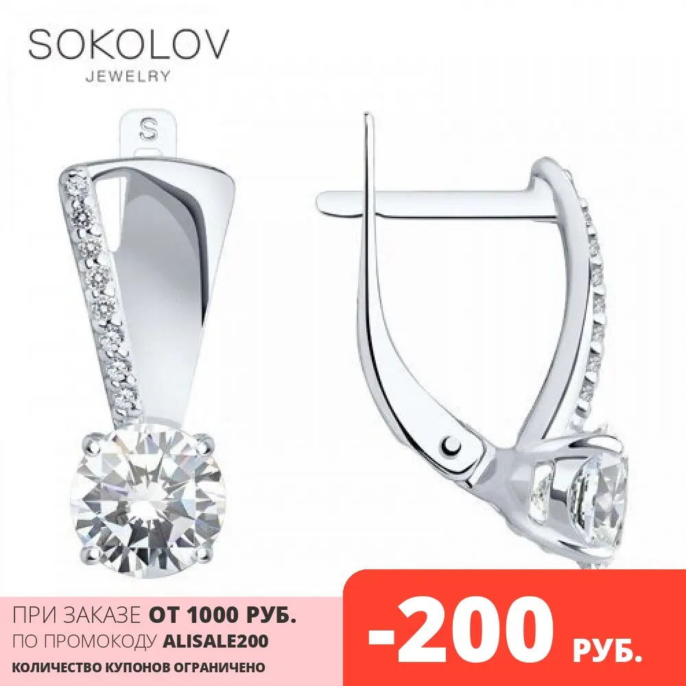 Серьги SOKOLOV из серебра с фианитами, Серебро, 925, Женские, Серьги 2022 тренд, Оригинальная продукция