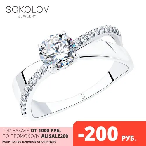 Кольцо SOKOLOV из серебра с фианитами, Серебро, 925, Женское, Ориги...