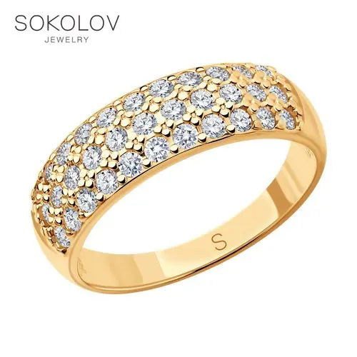 Кольцо SOKOLOV из золочёного серебра с фианитами, Серебро, 925, Женское, Оригинальная продукция