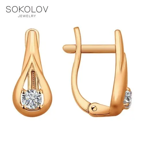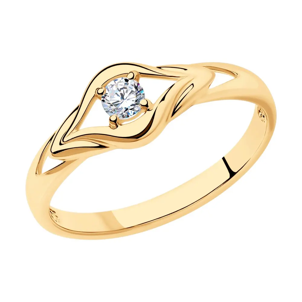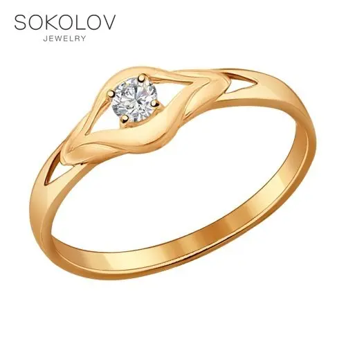 Кольцо SOKOLOV из золочёного серебра с фианитом, Серебро, 925, Женское, Оригинальная продукция