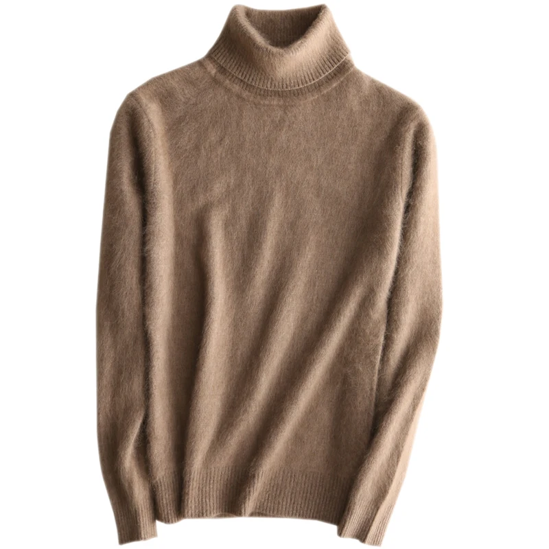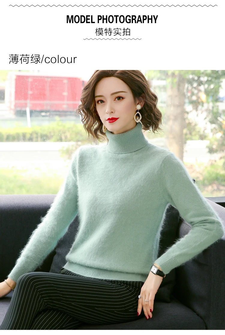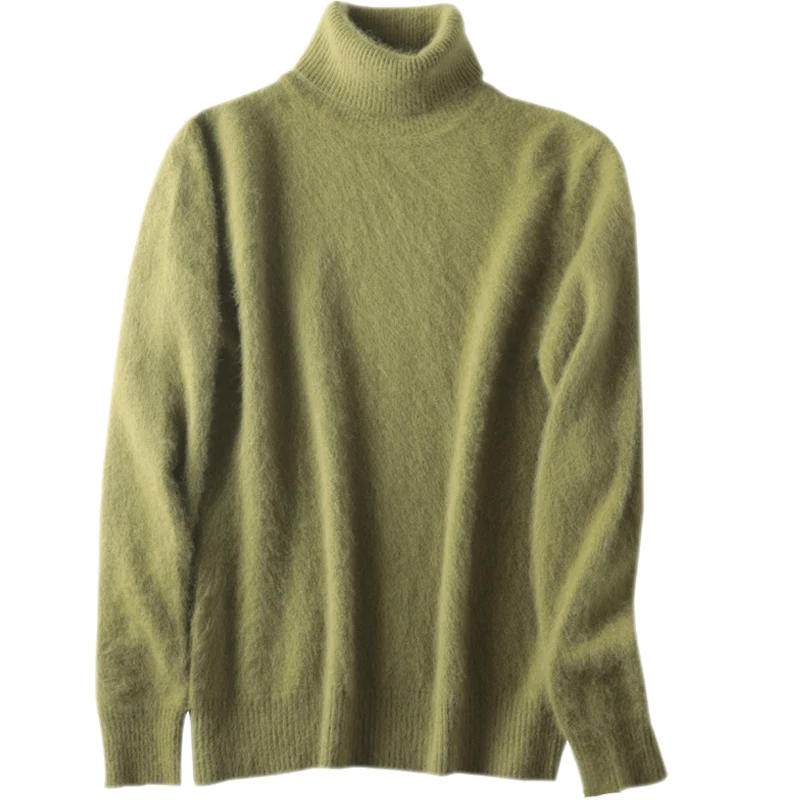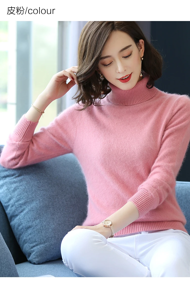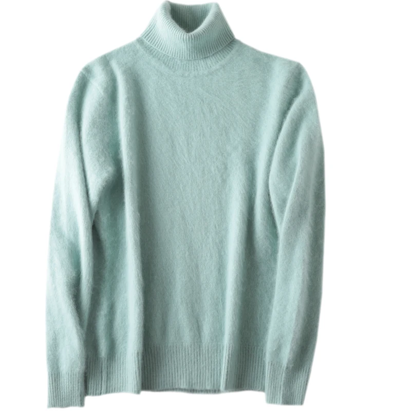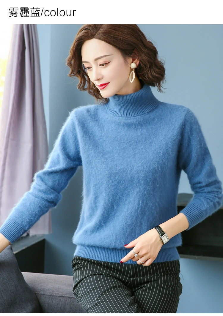 Зимний женский свитер, однотонный, 100% Норка, кашемир, водолазка, вязаный пуловер, тонкий мягкий теплый женский свитер с длинным рукавом, S-XXL