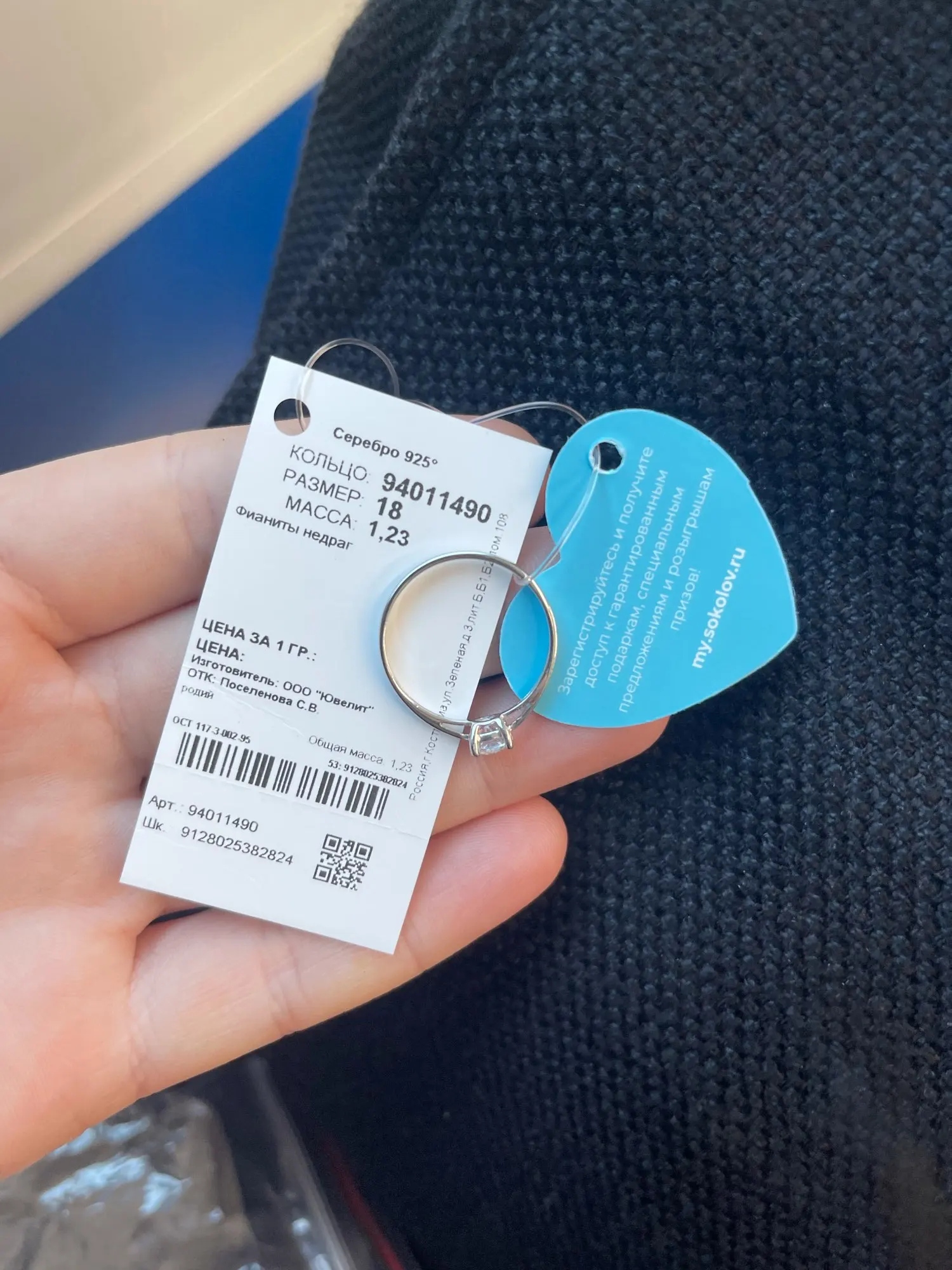 Кольцо очень классное, на официальном сайте Sokolov на него много отзывов, это топ продаж из категории серебряных колец! Выглядет как белое золото. Про то, что камень как бриллиант - говорить не буду. Бриллиант и фианит весьма различимы. Но не смотря на это камень сверкает, переливается разными гранями, это красиво. Ещё раз повторюсь, со стороны смотрится как реально дорогое кольцо, а по факту цена смешная на него. Берите, не пожалеете 100%. Это была любовь с первого взгляда. P.S: изначально хотела размер 17, что бы на безымянный палец. Потом подумала, пусть мне делает предложение мой мужчина )))) и заказала 18, на средний. Для этого написала продавцу, и уже в момент оформления заказала попросила изменить размер и прислать мне 18, вместо 17. Продавец отвечает быстро, вошёл в моё положение и отправил 18. За что я очень признательна. Доставка до Москвы заняла неделю, хотелось по раньше конечно, но и так норм. Колечком ОЧЕНЬ довольна! Те, кто сомневается серебро ли - СЕРЕБРО! Проба есть!