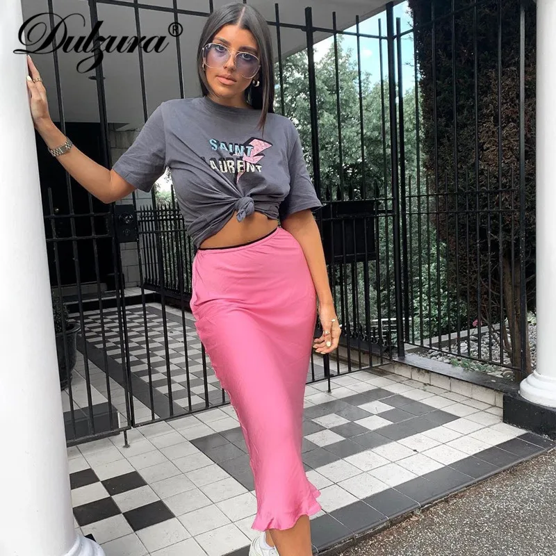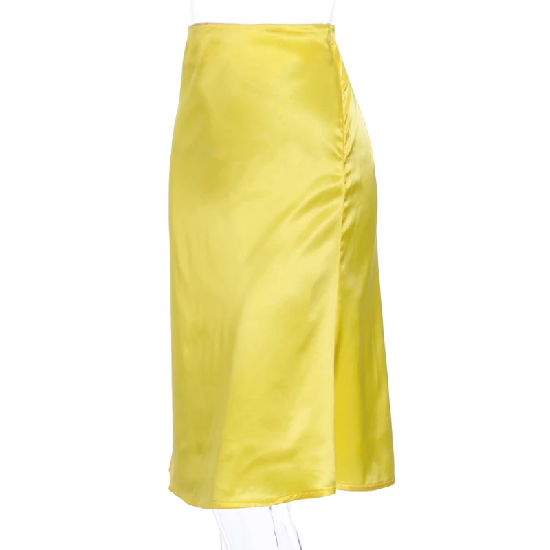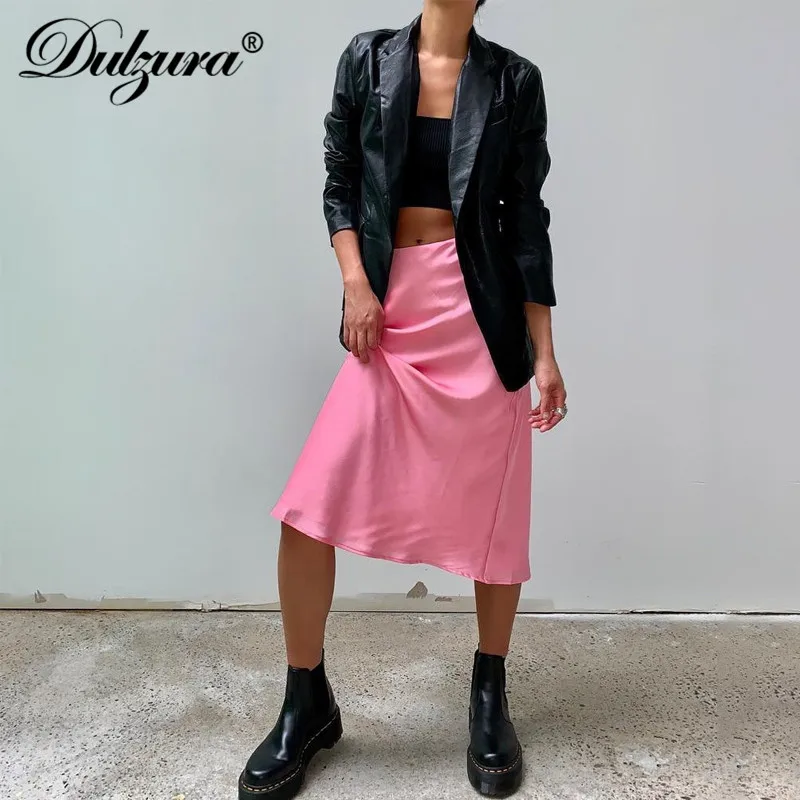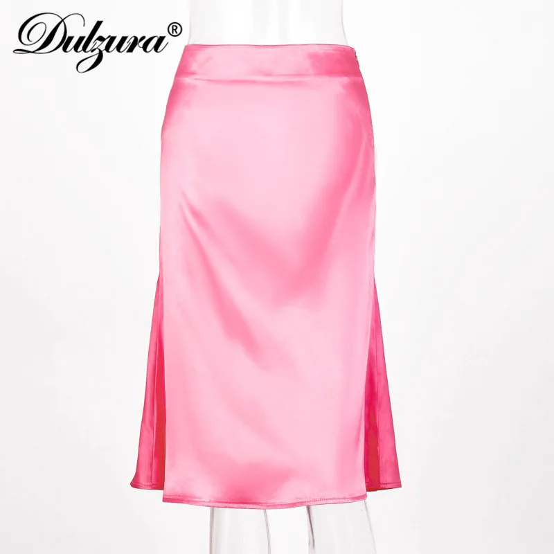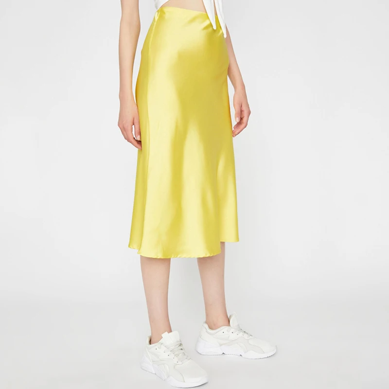 Женская атласная юбка миди Dulzura, однотонная шелковая юбка с высокой талией для отдыха и пляжа, Осень-зима 2019