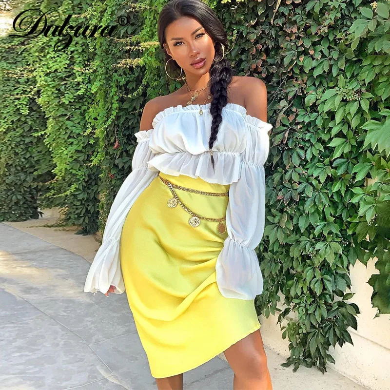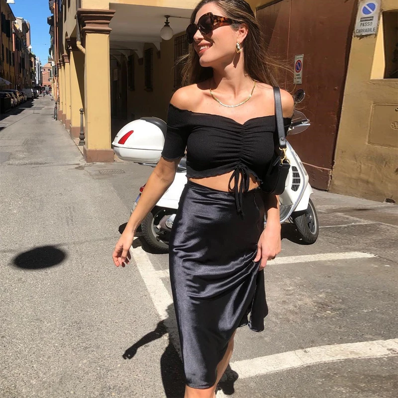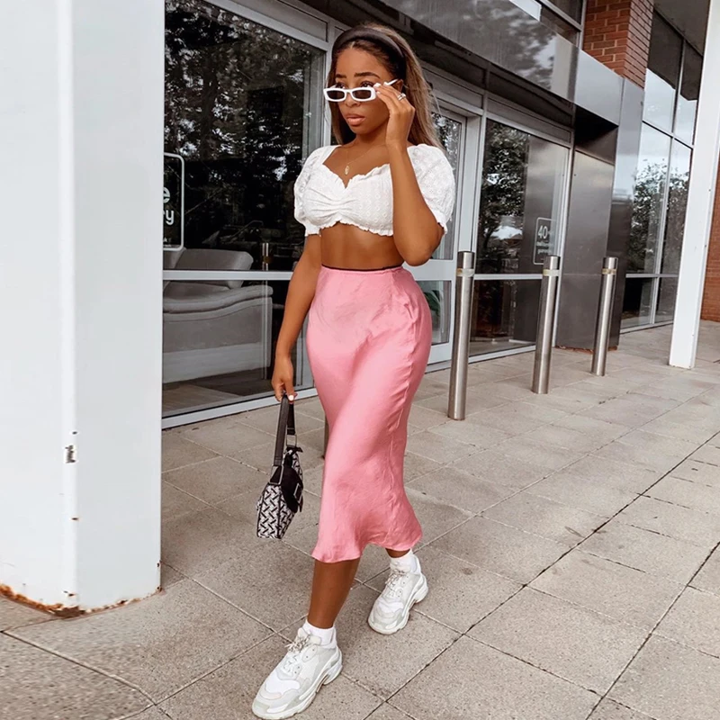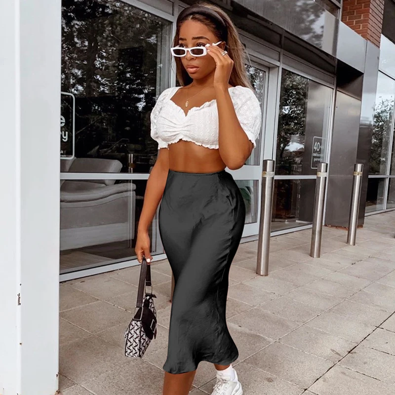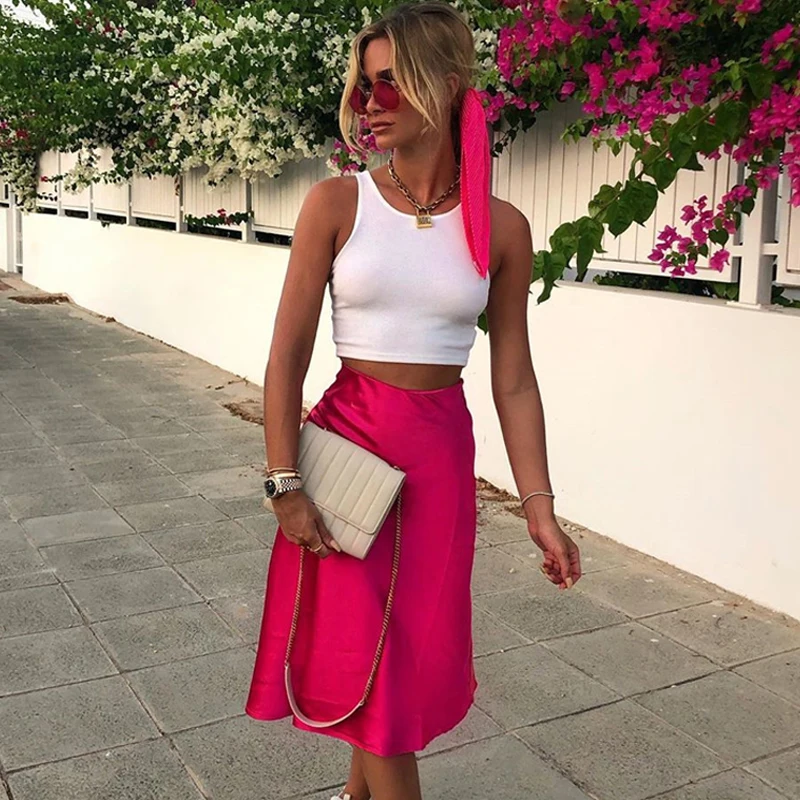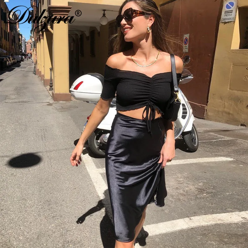 Женская атласная юбка миди Dulzura, однотонная шелковая юбка с высокой талией для отдыха и пляжа, Осень-зима 2019