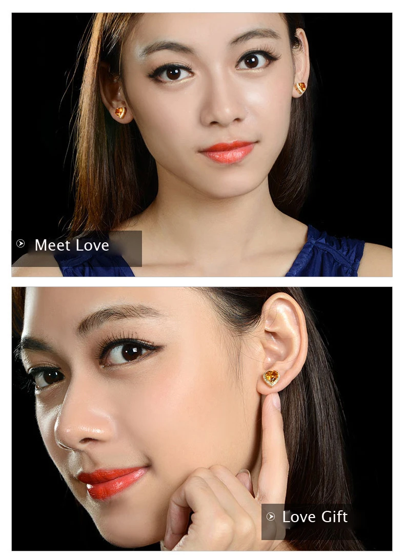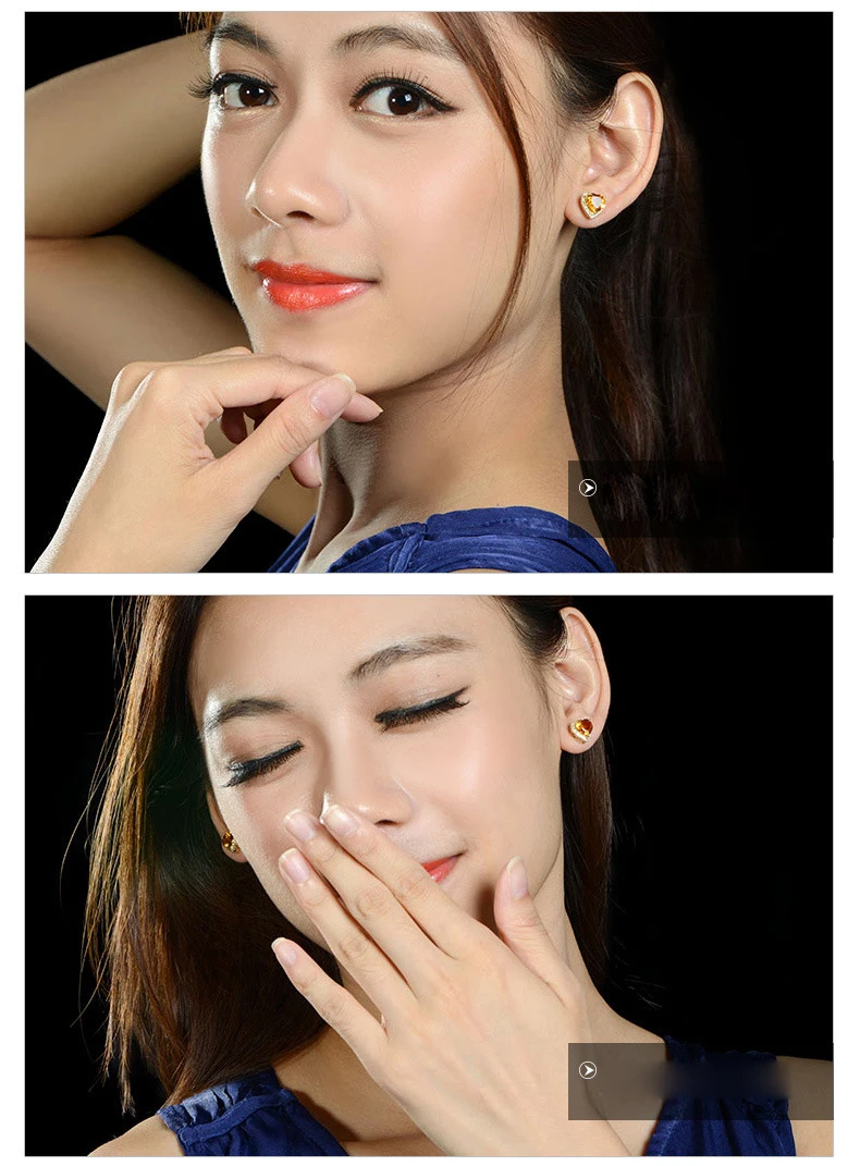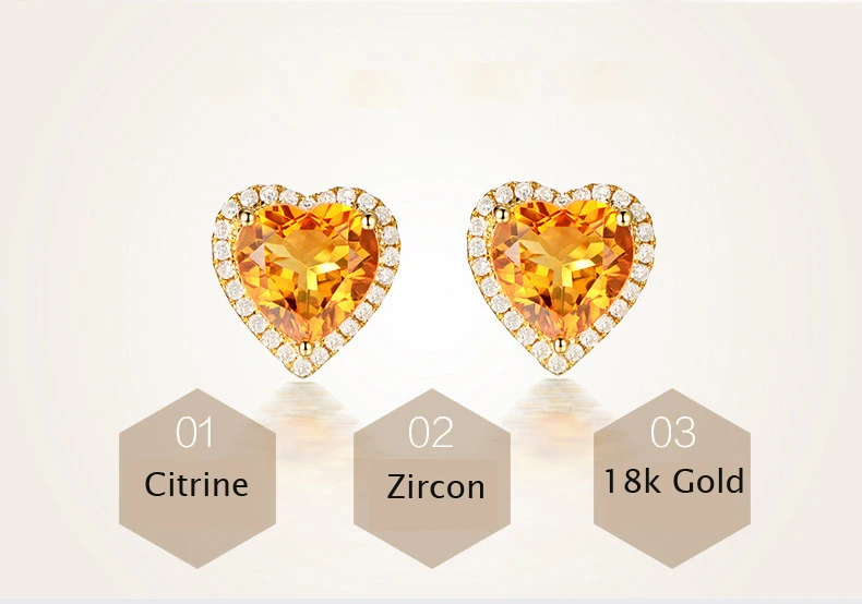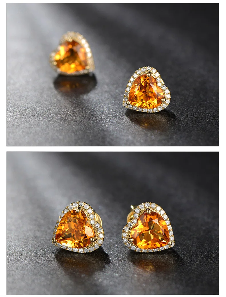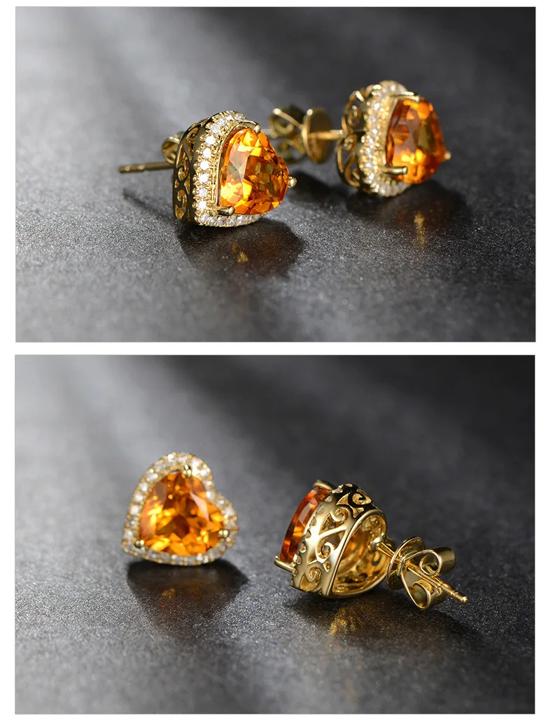 Feature 118K Gold Zircon Classic Heart-shaped Citrine Stud Earrings